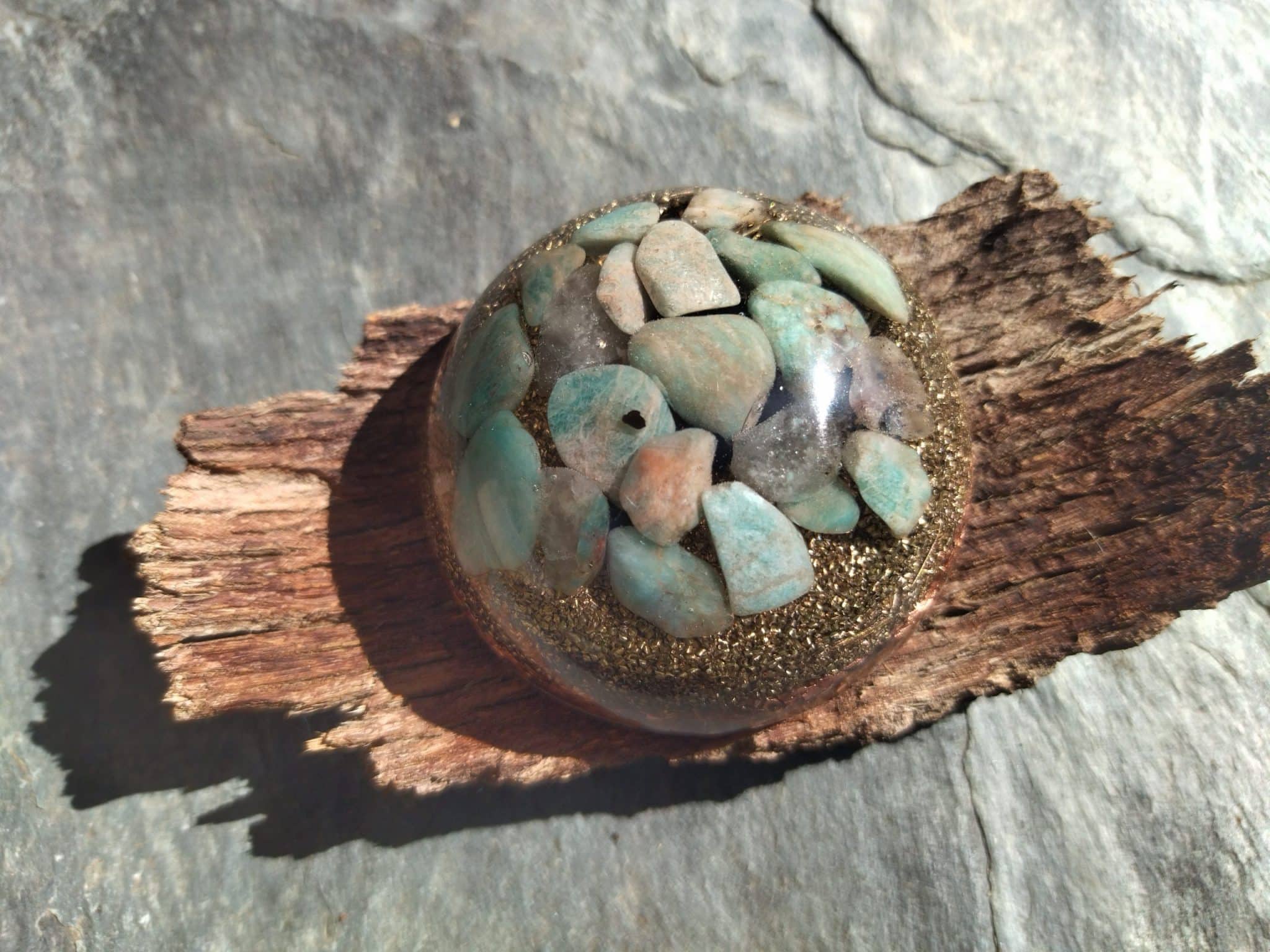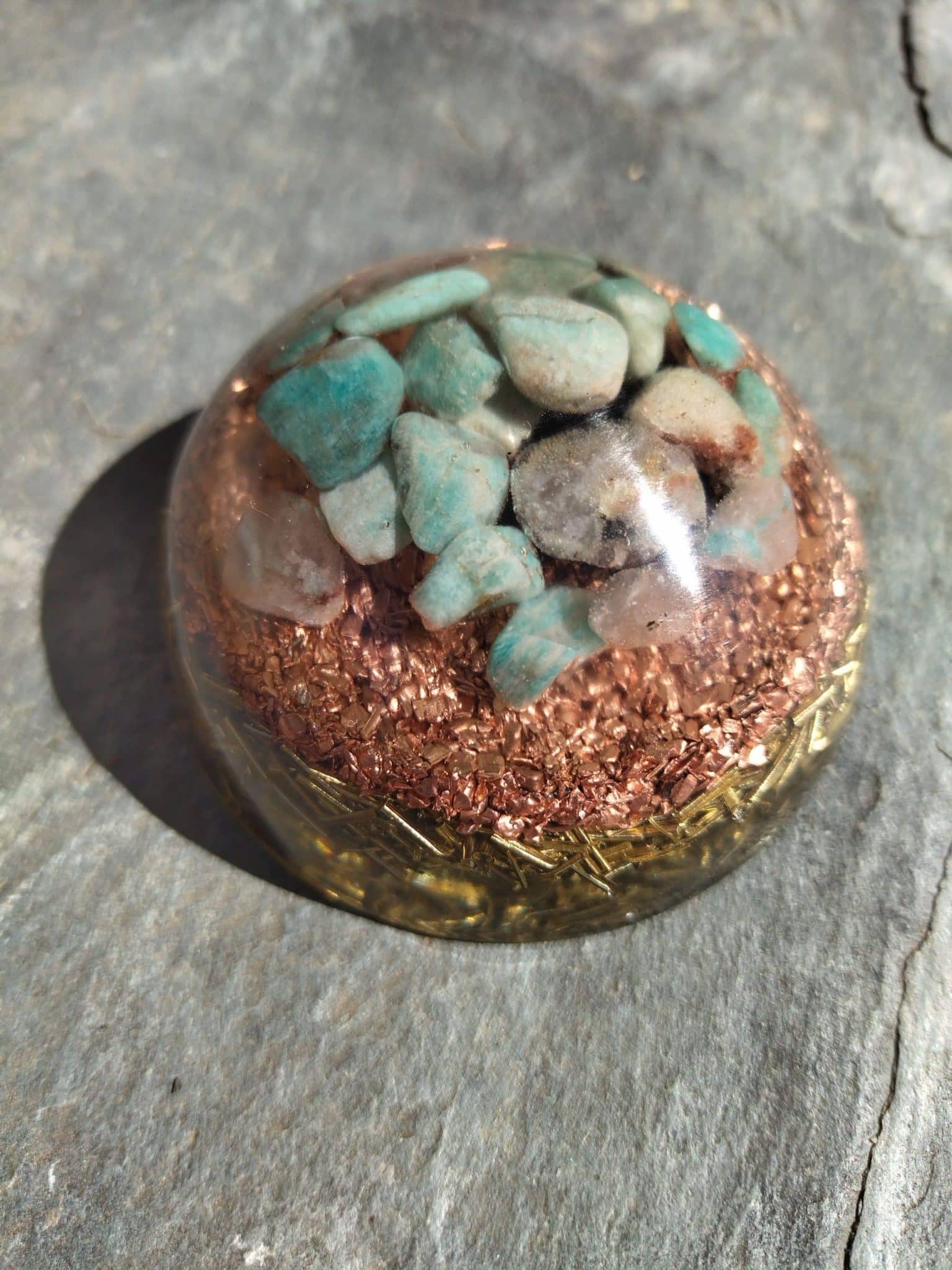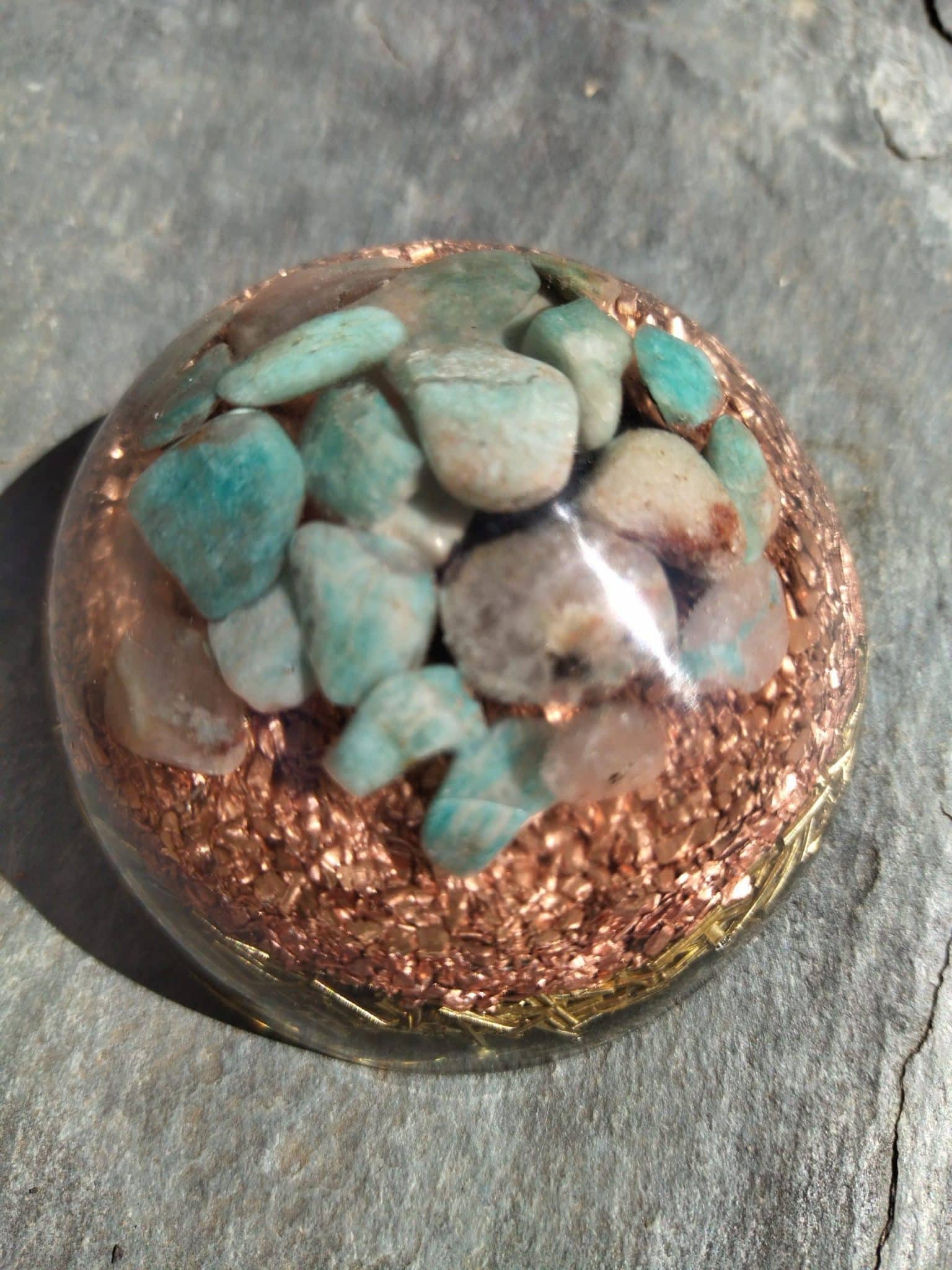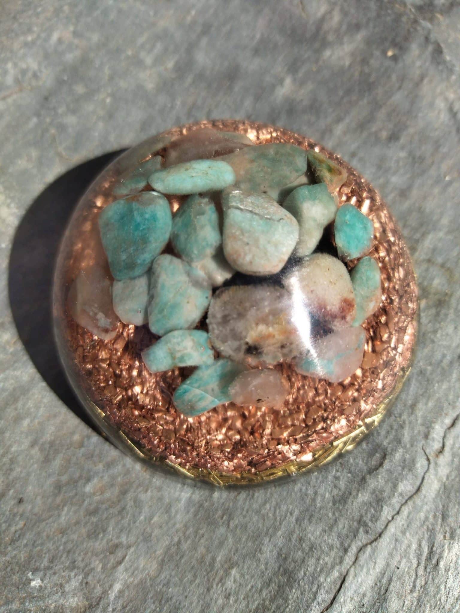 L’amazonite combinée à nos orgonites augmente sont efficacité .L’amazonite est idéale pour absorber les micro-ondes, ondes électromagnétiques et ondes électrostatiques. Cela en fait une orgonite superpuissante!
