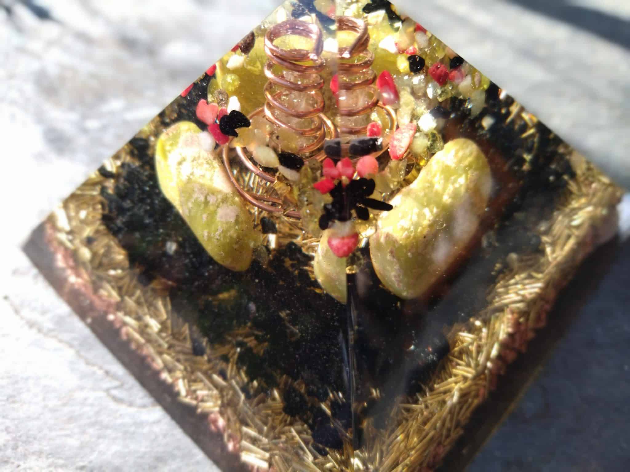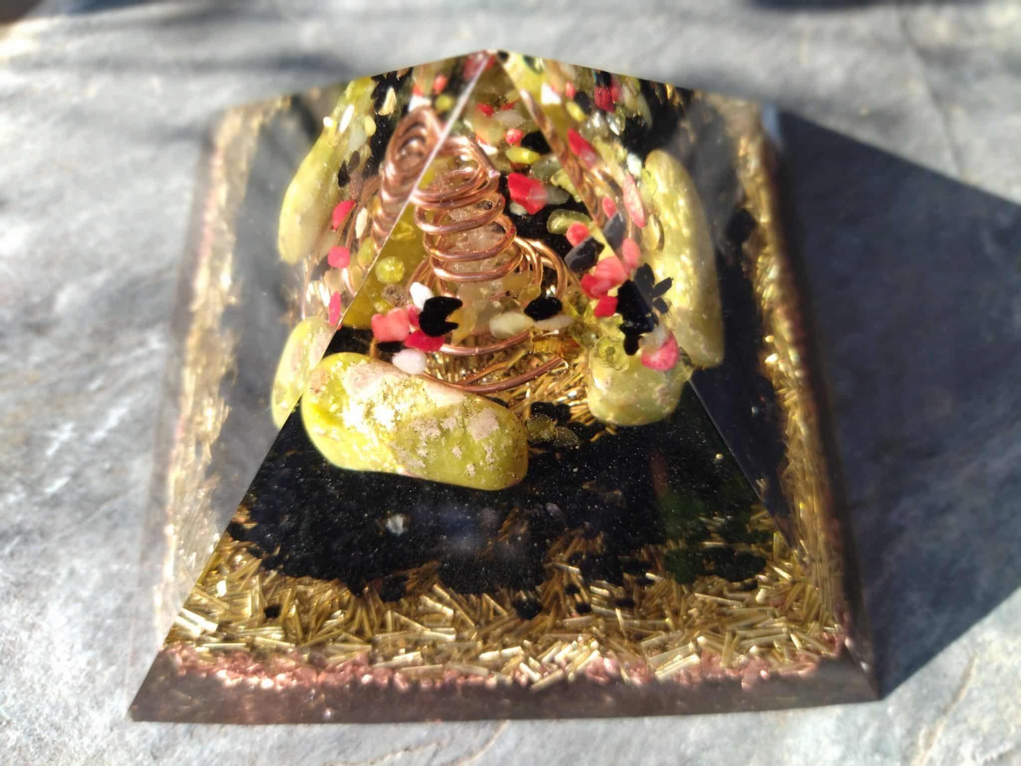 Notre orgonite pyramide serpentine est artisanale comme toutes nos orgonites.  Elles sont donc uniques. En effet, nous apportons une attention toute particulière aux cristaux, métaux, résine qui feront la qualité de vos orgonites. De ce fait, notre intention est de vous proposer des produits de qualité qui pourront prendre place dans votre intérieur en toute simplicité et apporter une touche d’élégance.